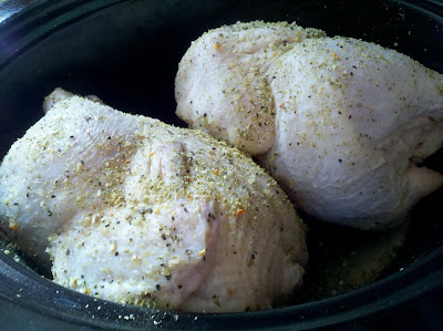 We got a ton of different kinds of squash in our produce boxes over the last few weeks, so I am always looking for recipes to use them in. I found this easy recipe for Crock Pot Butternut Squash soup on pinterest and gave it a shot. Roasting the squash and onion really brought out the sweet flavor. I used one butternut and one acorn squash, because I only had one butternut. At the end, I stirred in some sour cream, half and half and some garlic powder on top of the coriander, salt and pepper. A perfect accompaniment to a crispy